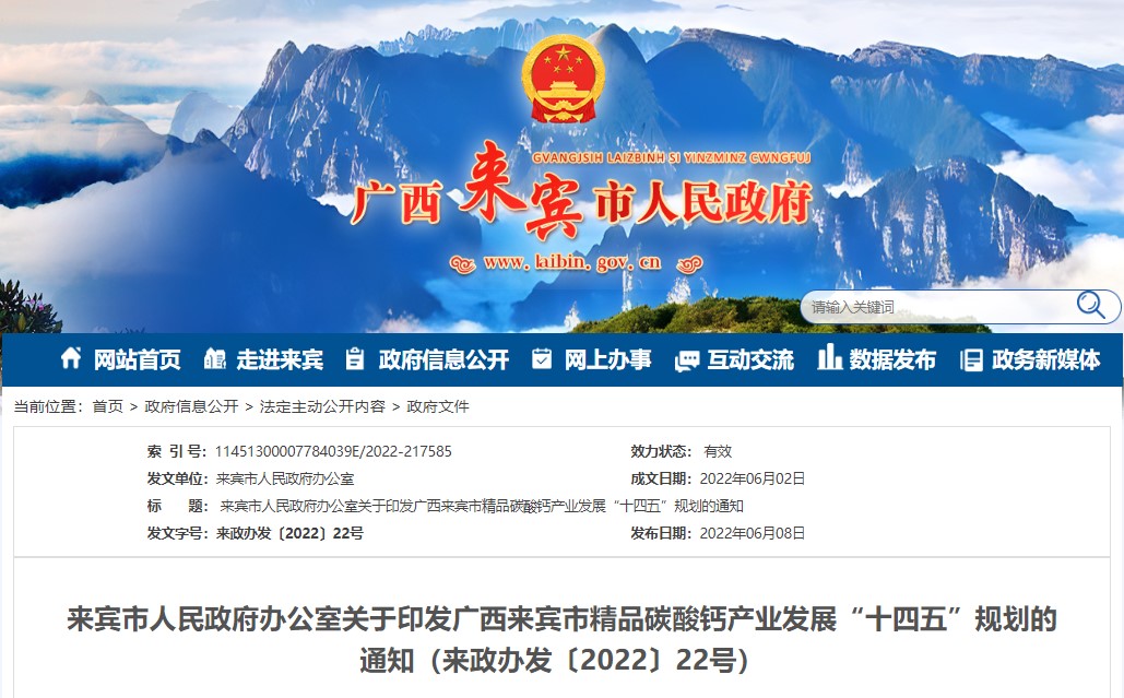 又是精品碳酸鈣粉體引領GDP增長,廣西來賓市“十四五”規劃!
